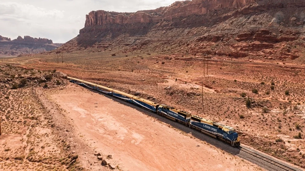 The highlight of the journey is a spectacular rail adventure aboard the luxurious Canyon Spirit, an exciting new scenic train experience introduced for the 2026 season. Operated by the same company behind the world-famous Rocky Mountaineer, this stunning rail route carries travelers through landscapes rarely seen from the highway. Canyon Spirit is essentially Rocky Mountaineer’s “American cousin,” delivering the same legendary hospitality and luxury rail experience through the dramatic canyon country of the American Southwest.